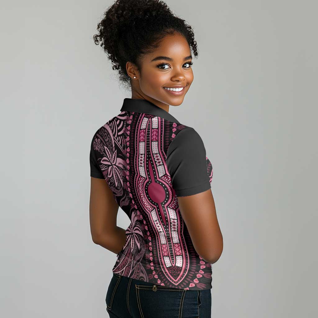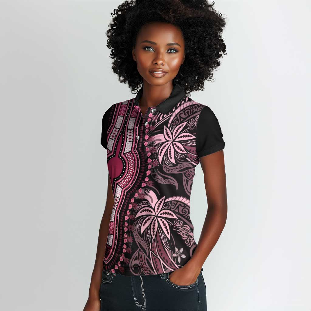 Polynesia Mixed African Dashiki Women Polo Shirt Afro-pacific Culture - Pink