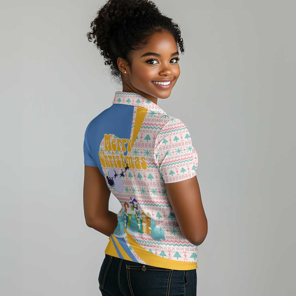 Somalia Christmas Women Polo Shirt Santa Cheetah Christmas Tree Village Scene and Festive Snowflake