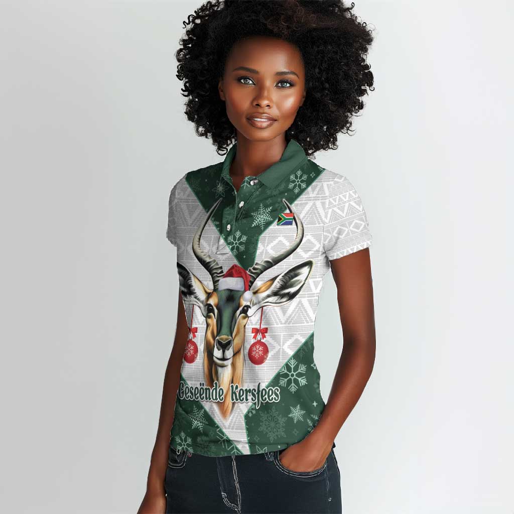 South Africa Springboks Christmas Women Polo Shirt Bokke Santa - Geseende Kersfees