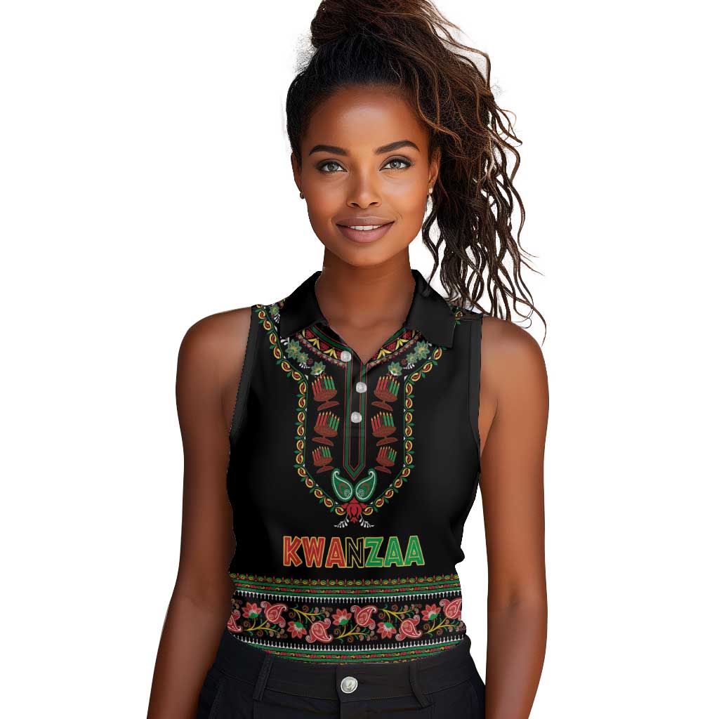 Personalized Afro-American Kwanzaa Women Sleeveless Polo Shirt Dashiki Mix Paisley Pattern