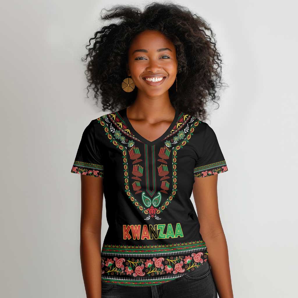 Personalized Afro-American Kwanzaa Women V-Neck T-Shirt Dashiki Mix Paisley Pattern