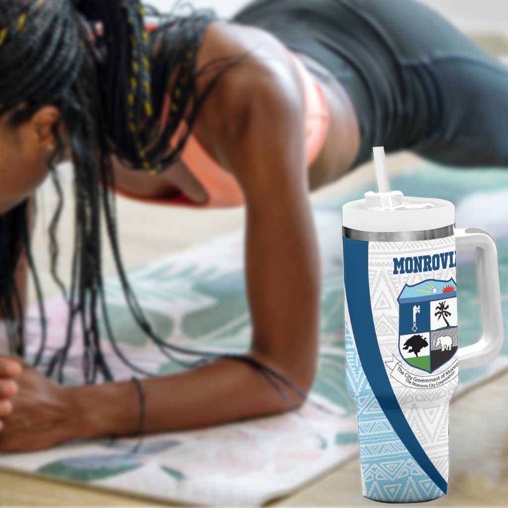 Afro Liberia Monrovia Capital Tumbler With Handle African Pattern Curves Style