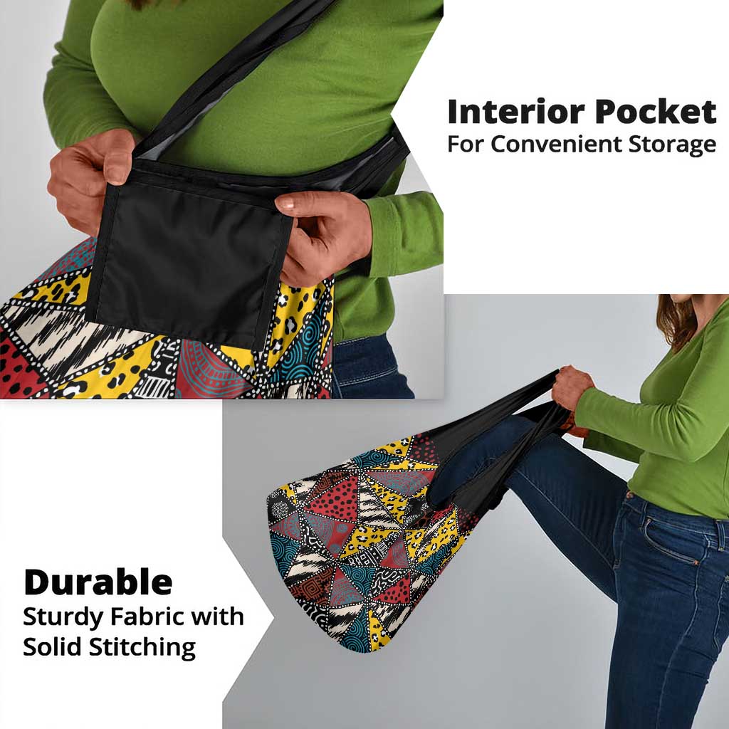 African Wild Animal Skins Grocery Bag Triangles Pattern Afro Pattern Style