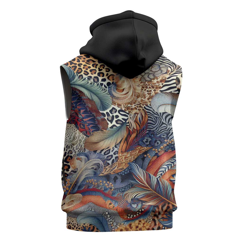 African Wild Animal Skins Sleeveless Zip Hoodie Unique Leopard Zebra And Snake Patterns