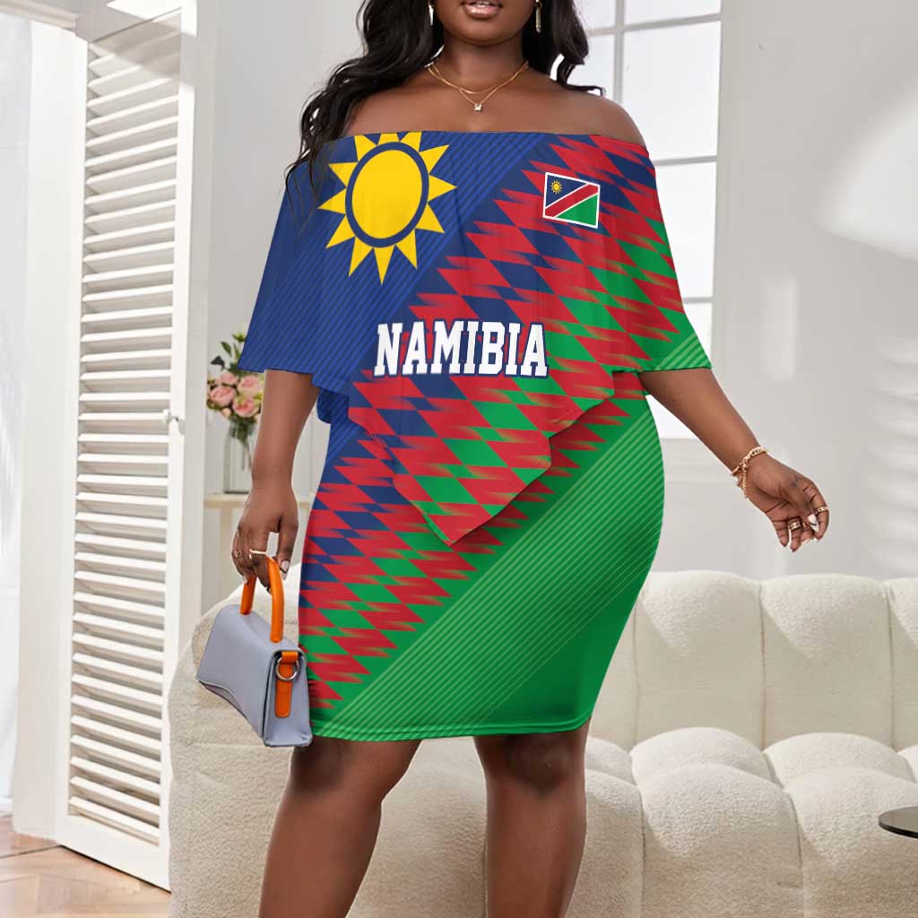 Custom Cricket African Namibia Off Shoulder Short Dress Namibian Sporty Pattern Flag Motif