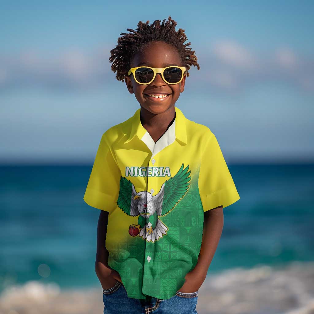 Custom Cricket African Nigeria Kid Hawaiian Shirt Najeriya Angry Eagle Flag Motif