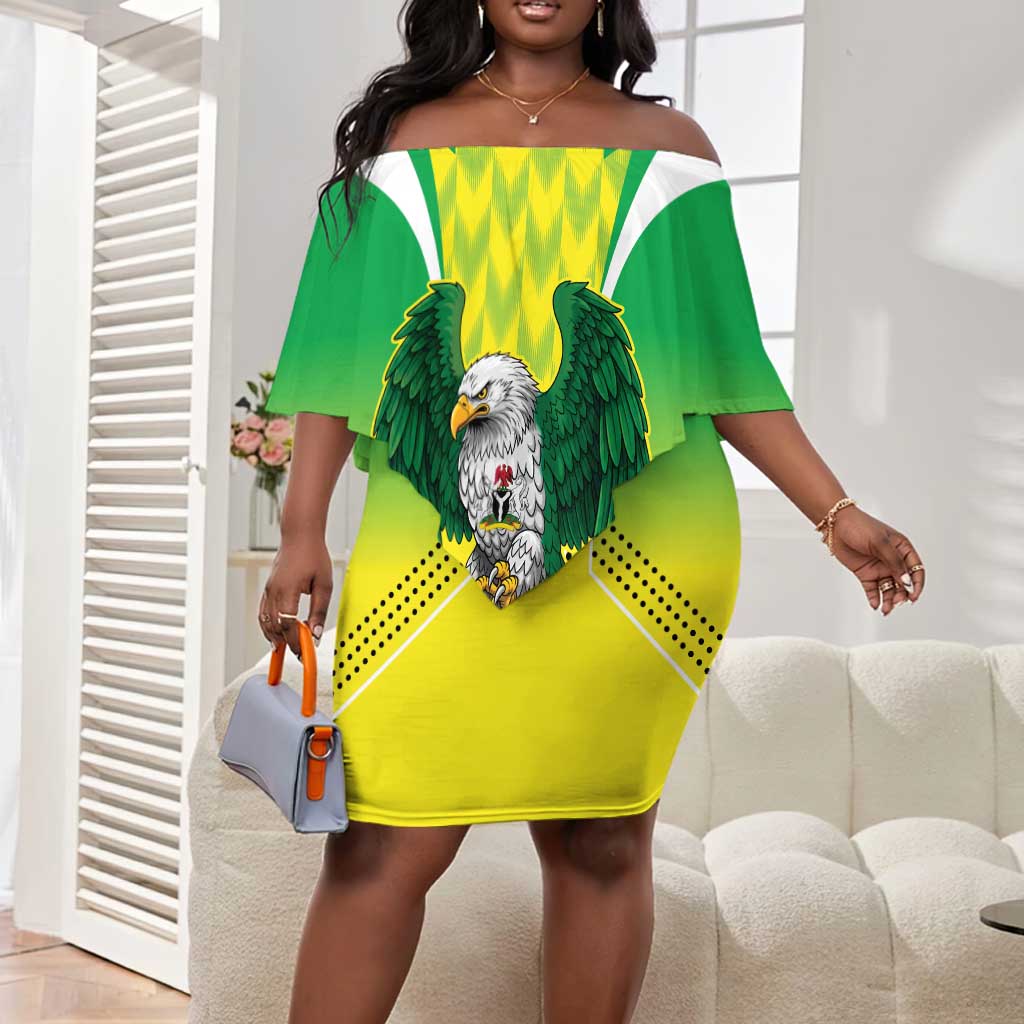 Custom Cricket African Nigeria Off The Shoulder Long Sleeve Dress Najeriya Yellow Greens Eagle