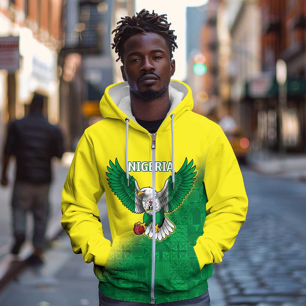 Custom Cricket African Nigeria Zip Hoodie Najeriya Angry Eagle Flag Motif