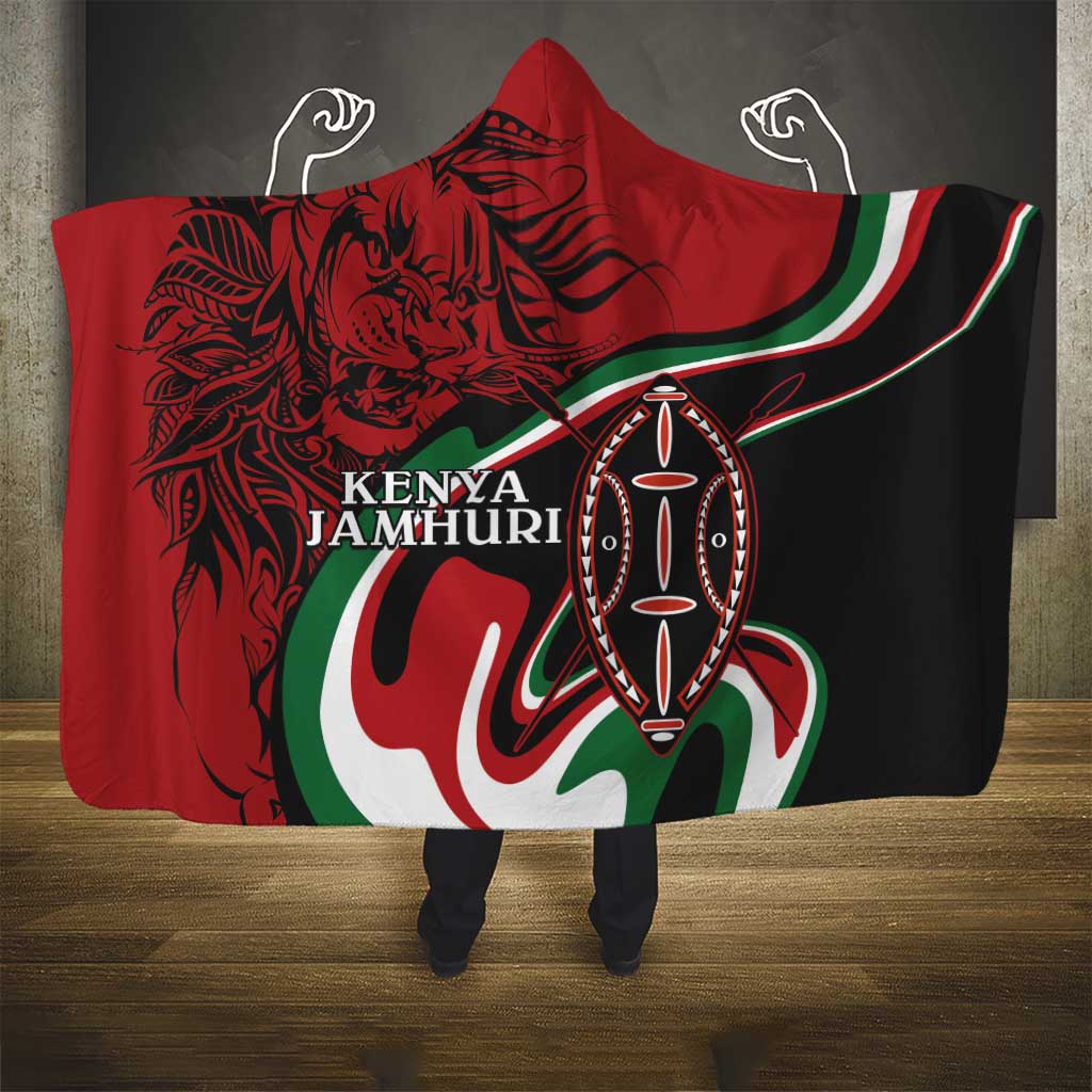 Happy Jamhuri Day Kenya Hooded Blanket Kenyan Lion and Maasai Shield