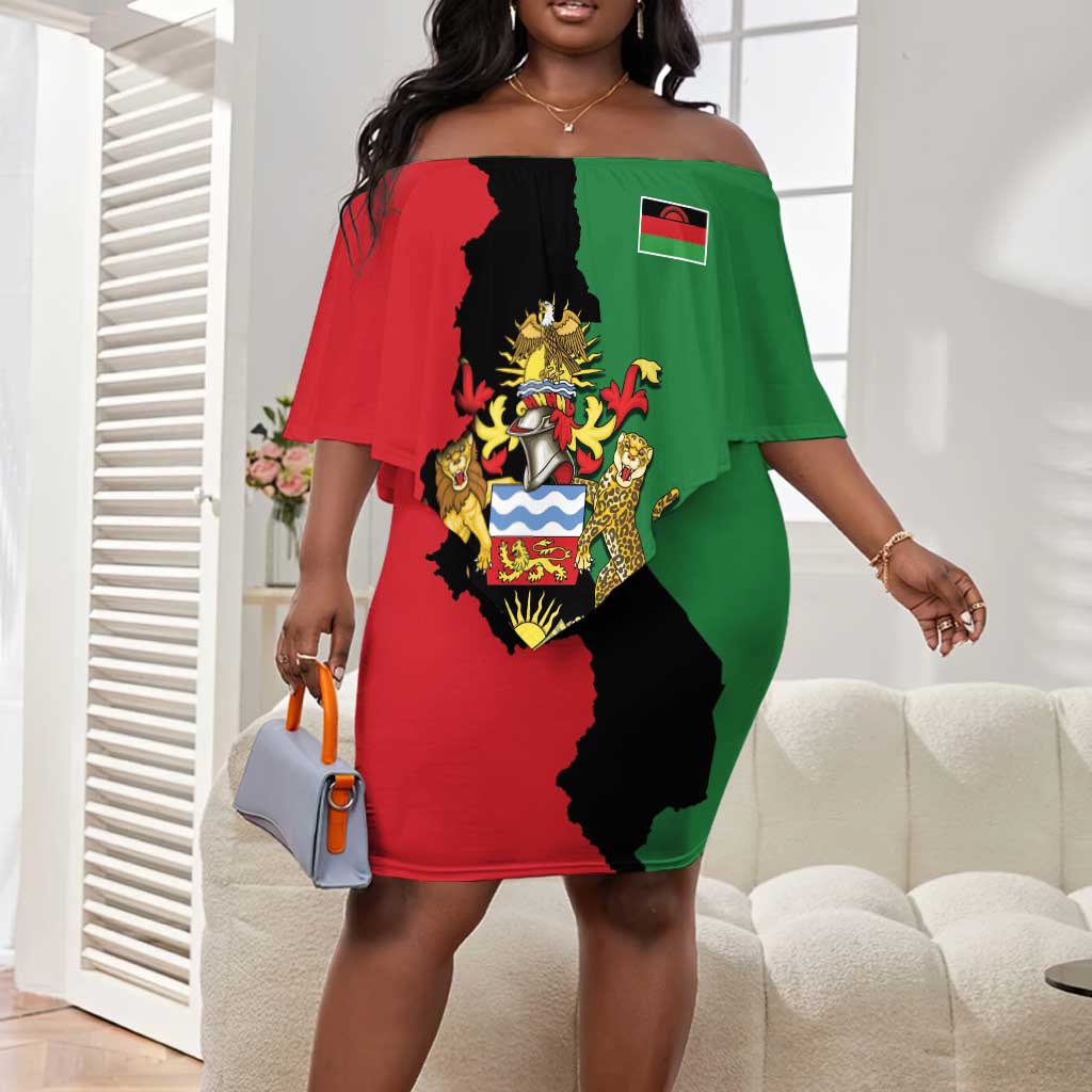 Malawi Flag Map Off Shoulder Maxi Dress Simple Malawi Emblem Coat of Arms LT9