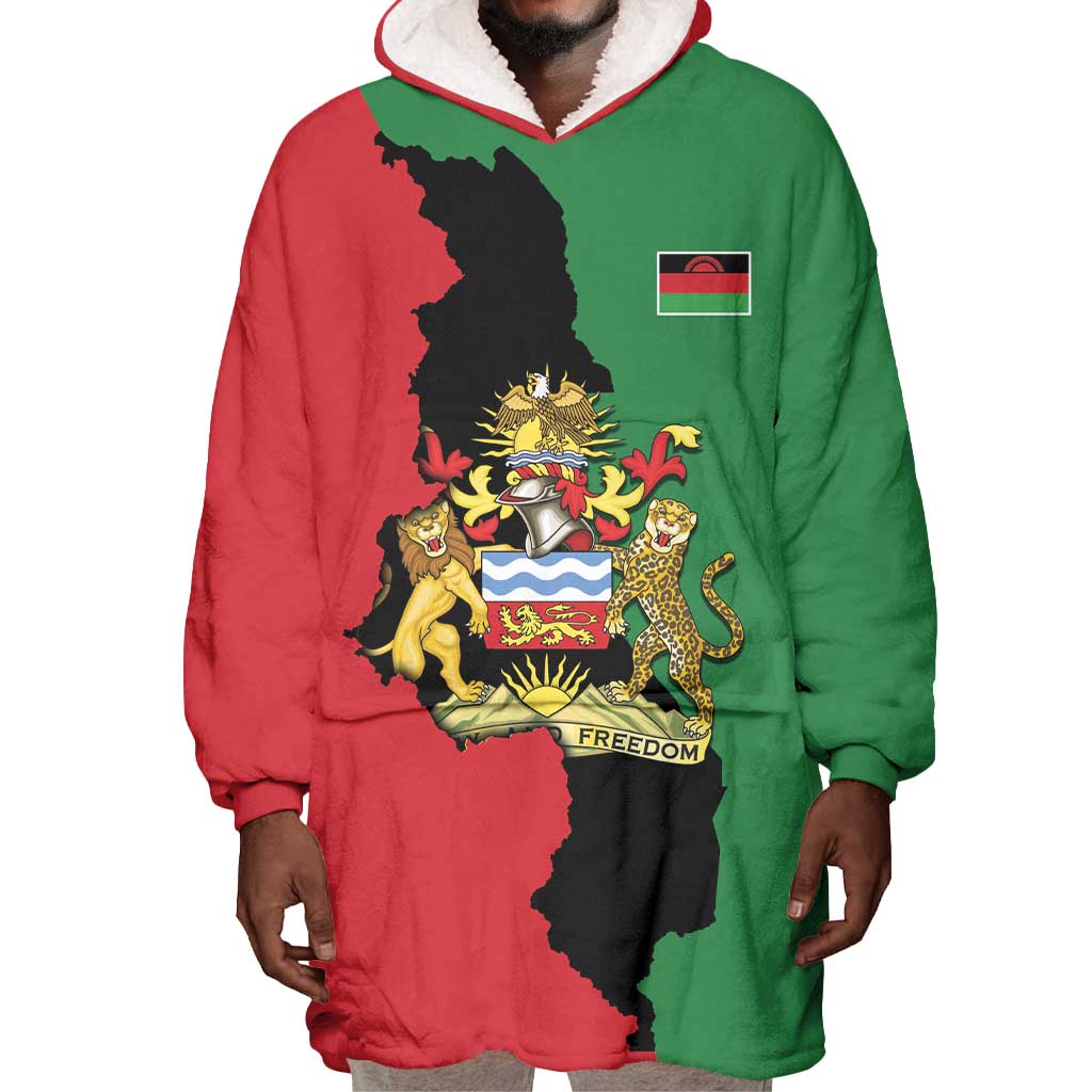 Malawi Flag Map Wearable Blanket Hoodie Simple Malawi Emblem Coat of Arms