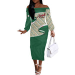 Algeria Off The Shoulder Long Sleeve Dress with Arabic Calligraphy and Traditional Pattern Design