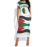 Algeria Short Sleeve Bodycon Dress with National Flag and Coat of Arms Crest Design