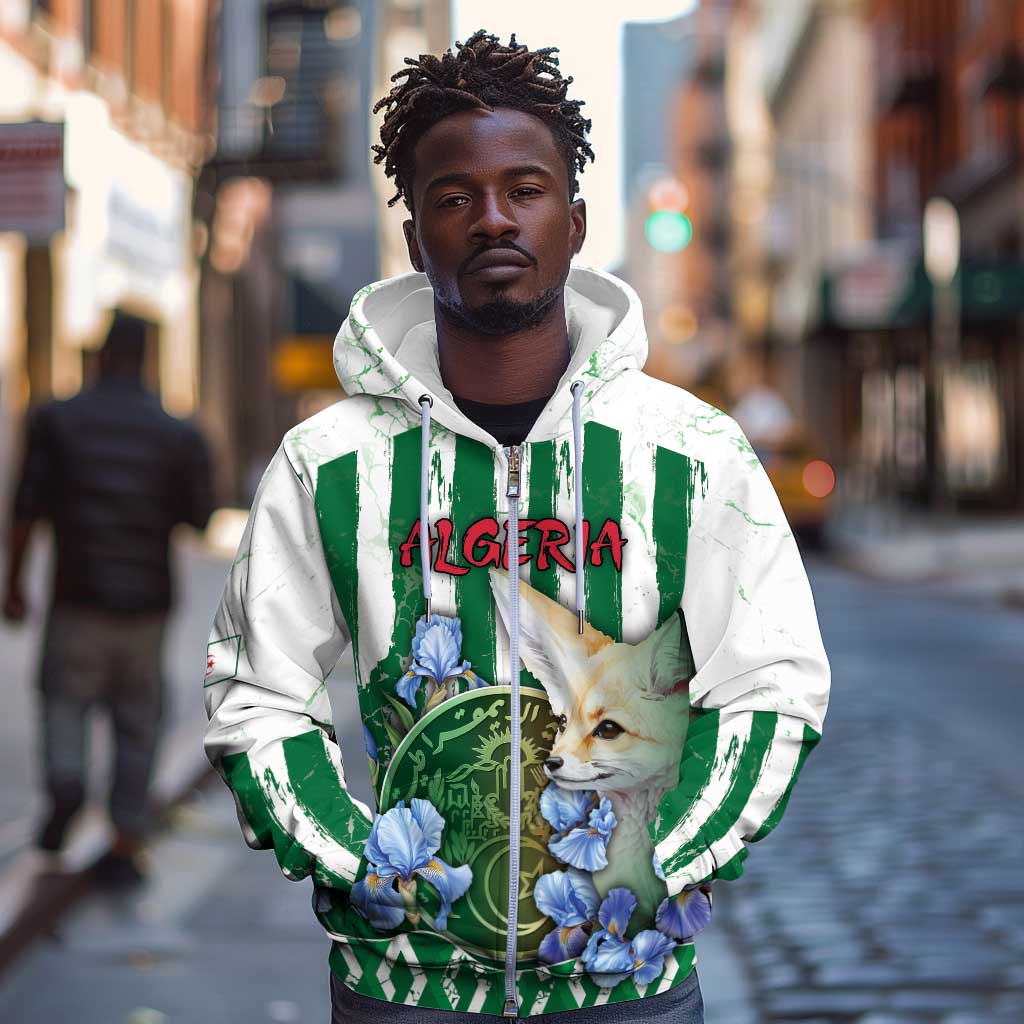 Personalized Algeria Zip Hoodie Fennec And Iris Grunge Style