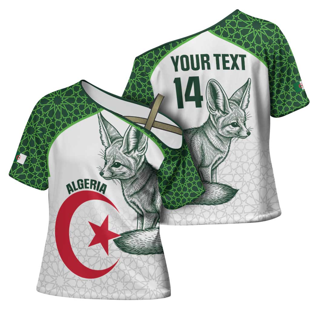 The Custom Algeria Football Cross Shoulder Shirt 2026 Go Greens Fennec With Islamic Pattern by African Pride is crafted for individuals who want to express their style with confidence. Designed for casual wear, festivals, and standout looks, this custom-made cross shoulder shirt combines premium fabric with advanced printing for long-lasting impact.