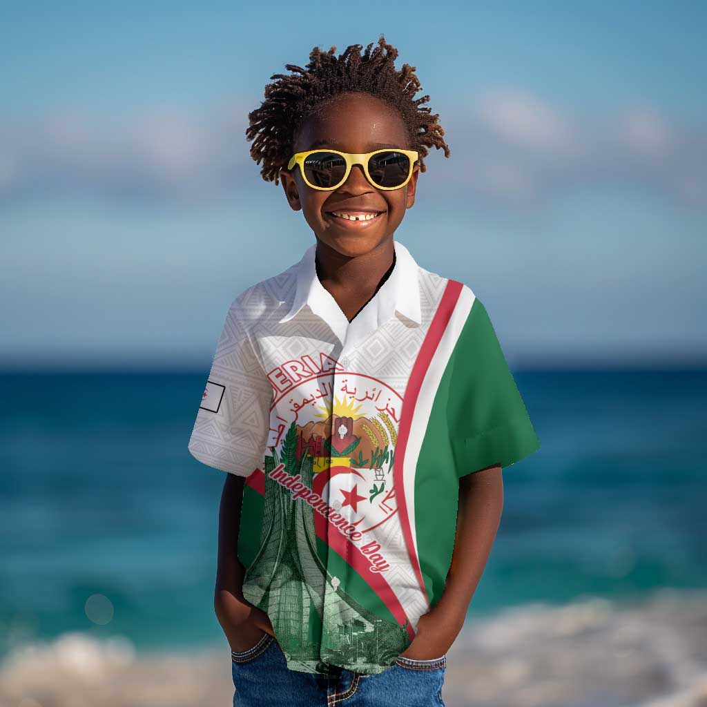 Algeria Independence Day Kid Hawaiian Shirt Coat Of Arms With Maqam Echahid