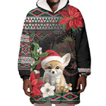 Algeria Christmas Personalized Wearable Blanket Hoodie Fennec Fox Santa and Traditional Pattern