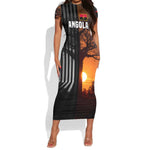 Angola Short Sleeve Bodycon Dress Sunset Zebra Design and African Nature