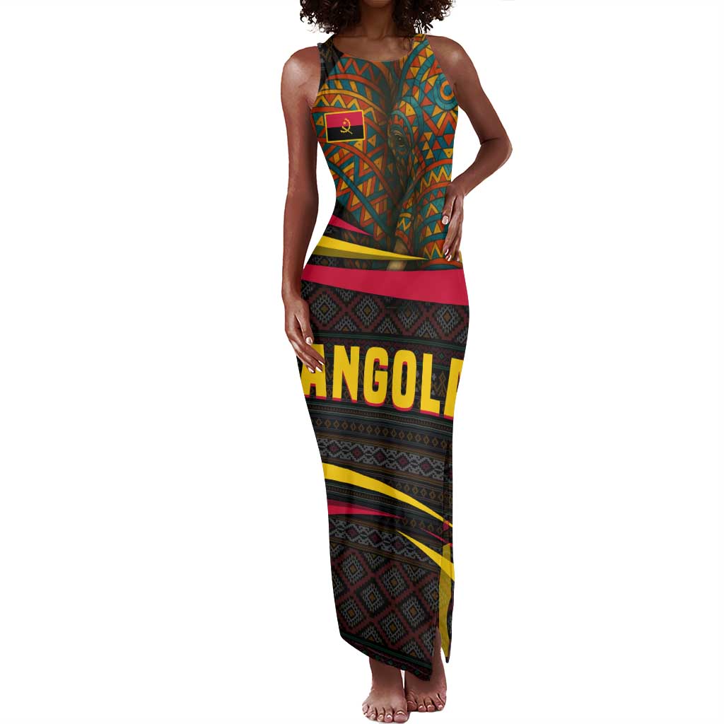 Angola Tank Maxi Dress Red Black Yellow Tribal and Elephant