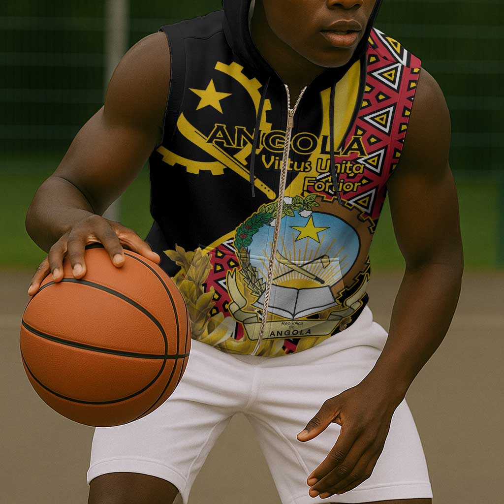 Personalized República de Angola Sleeveless Zip Hoodie Coat Of Arms With Map