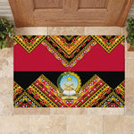 Angola Independence Day Rubber Doormat with Coat of Arms and Samakaka Pattern
