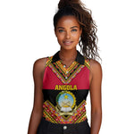Angola Independence Day Women Sleeveless Polo Shirt with Coat of Arms and Samakaka Pattern