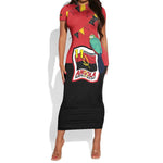 Happy Angola Independence Day Short Sleeve Bodycon Dress With Red-crested Turaco