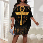 Ankh with Eye of Horus Off Shoulder Short Dress Ancient Egypt Culture