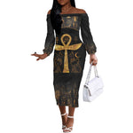 Ankh with Eye of Horus Off The Shoulder Long Sleeve Dress Ancient Egypt Culture