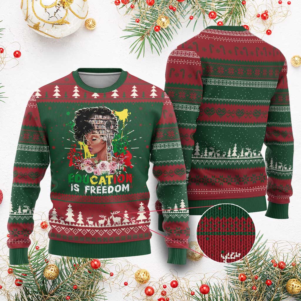 Education Is Freedom Knit Sweatshirt Black Educated Girls African American