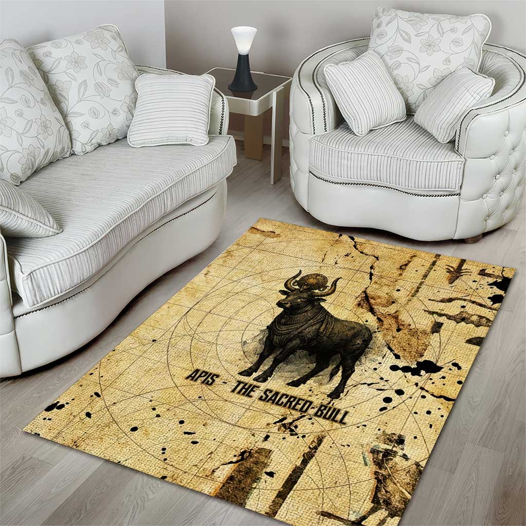 Apis Area Rug Ancient Egyptian Papyrus Map, Egyptian Crown Bull Illustration