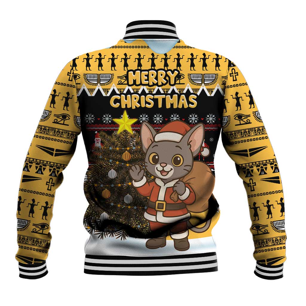 Egypt Christmas Baseball Jacket Santa Cat Sleigh Reindeer Christmas Tree and Ancient Hieroglyphic