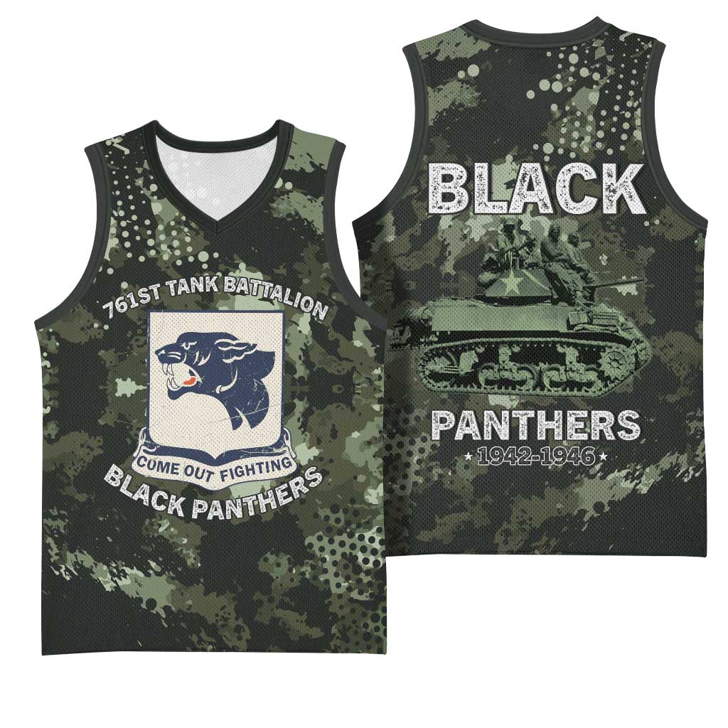 761st Tank Battalion Black Panthers Basketball Jersey WWII Military Camouflage