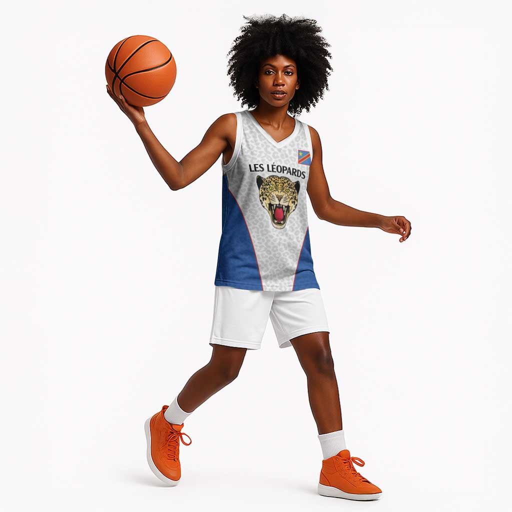 Africa DR Congo Football Custom Basketball Jersey White Leopard Skin Pattern