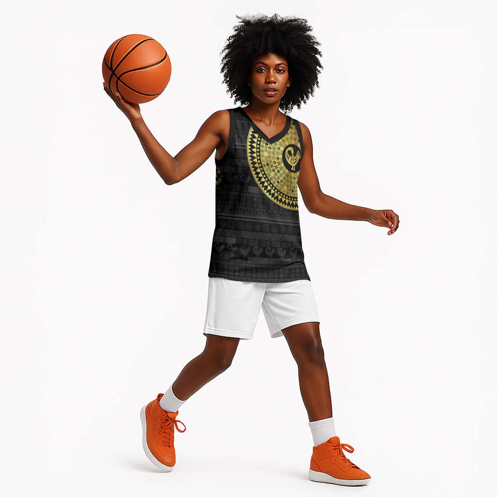 African Adinkra Basketball Jersey Sankofa Bird - Gold Version - Chest Arm Tattoo LT15
