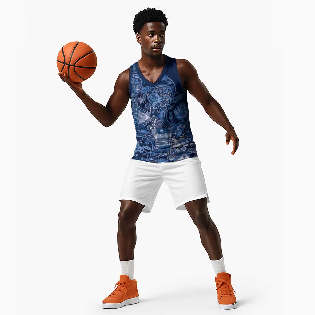 Afro Floral mix Maasai Shuka Basketball Jersey Blue Moitf