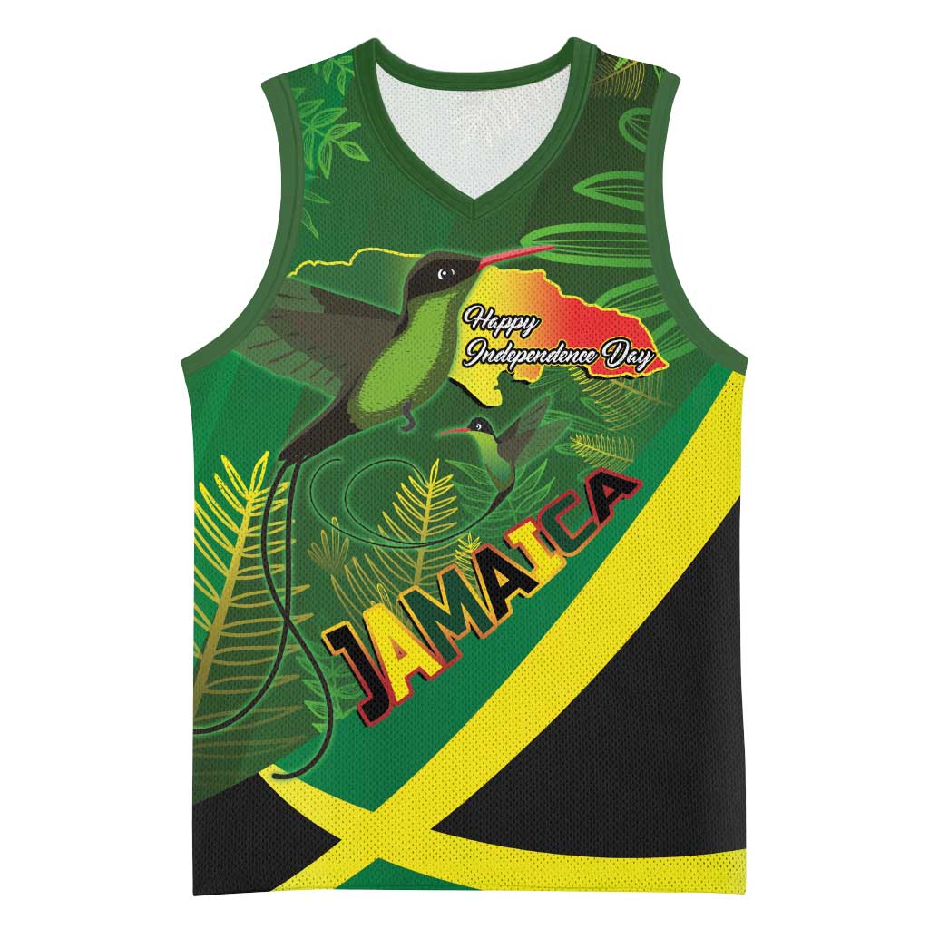 Afro Jamaica Independence Day Basketball Jersey Swallow-tail Hummingbird with Tropical Plants