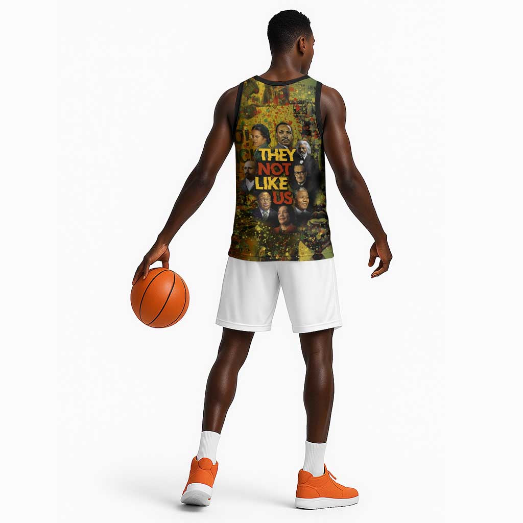 Black History Portrait Collage Basketball Jersey Africa Empowering They Not Like Us Quote in Grunge Paint