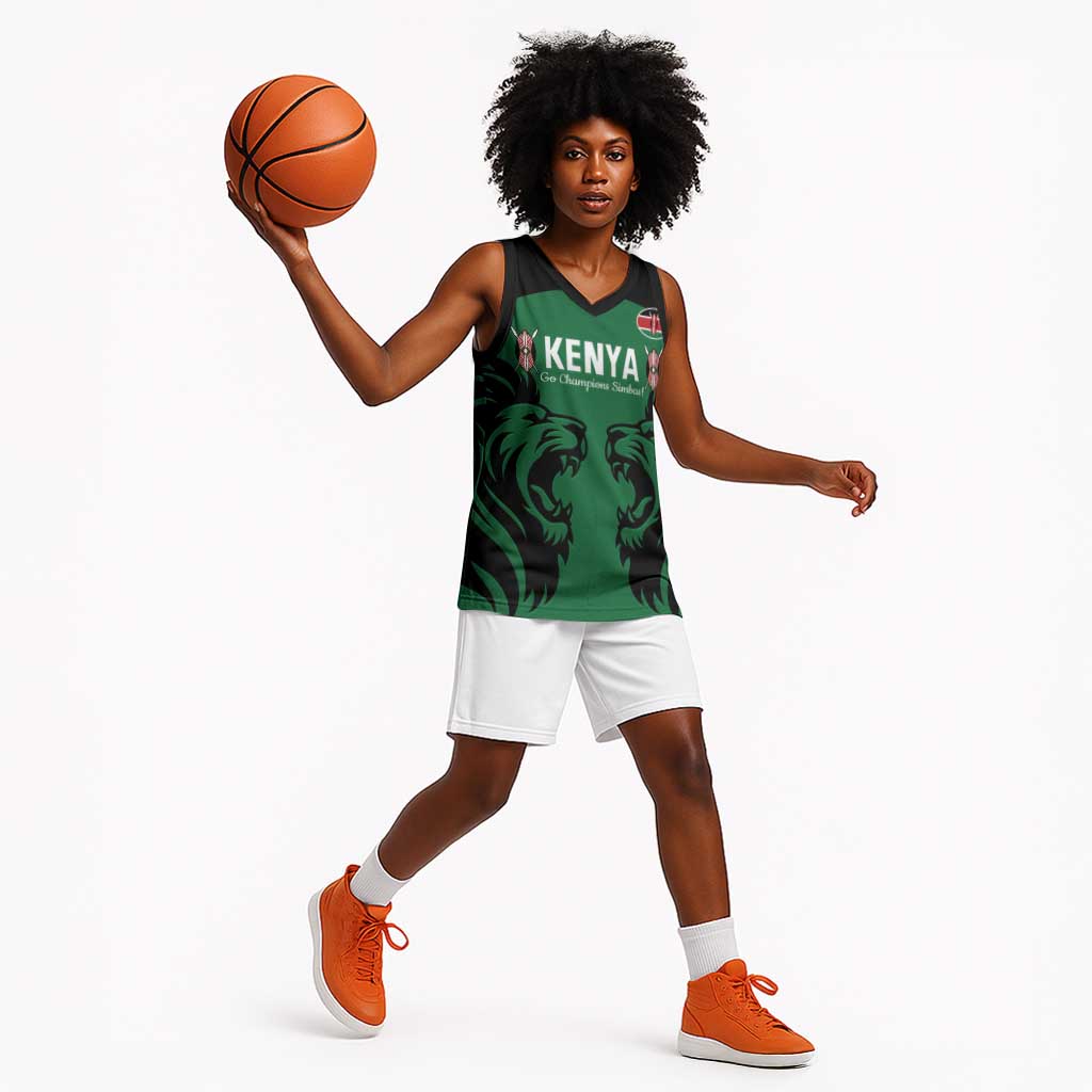 Custom Kenya Rugby Basketball Jersey 2024 Go Champions Simbas - Green