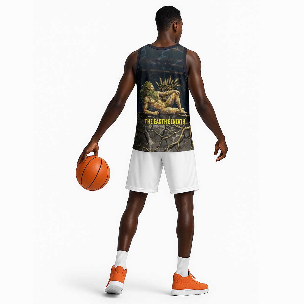 Geb Basketball Jersey Ancient Egyptian Cracked Earth and Wheat Illustration Egyptian Earth God