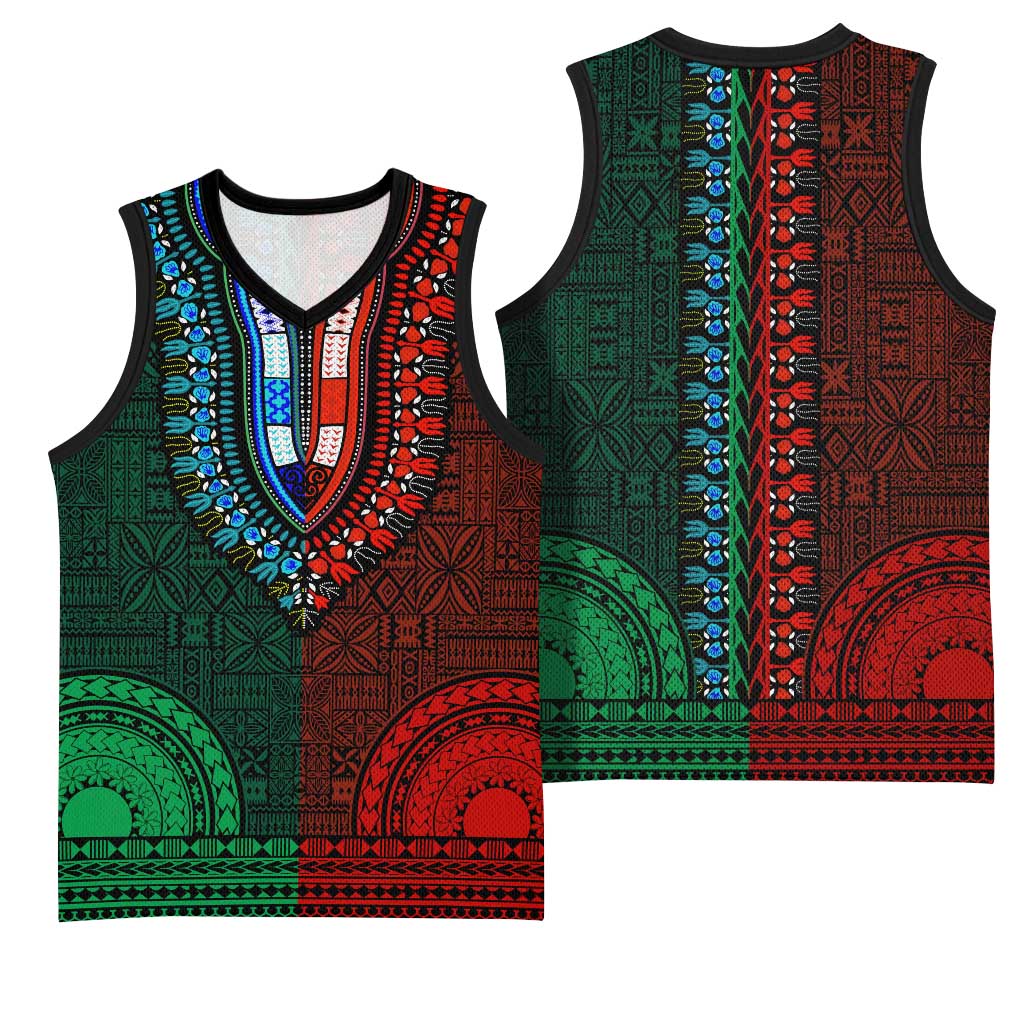 Green-red Dashiki and Tapa Pattern Basketball Jersey Africa-Polynesia Together Culture