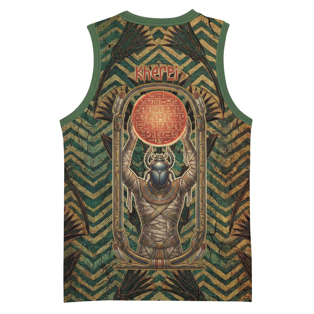 Khepri Basketball Jersey Ancient Egyptian Chevron, Scarab Ankh and Winged Khepri Guardian Motif