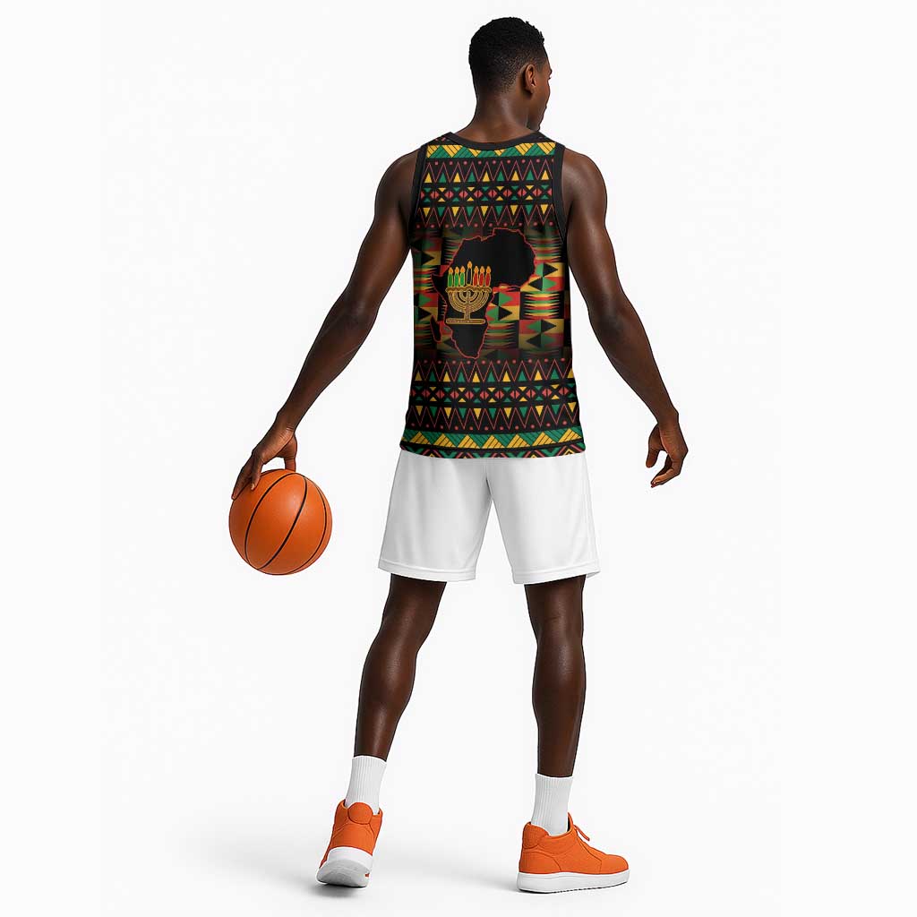 Kwanzaa Festival Basketball Jersey with Kinara Candles and African Pattern