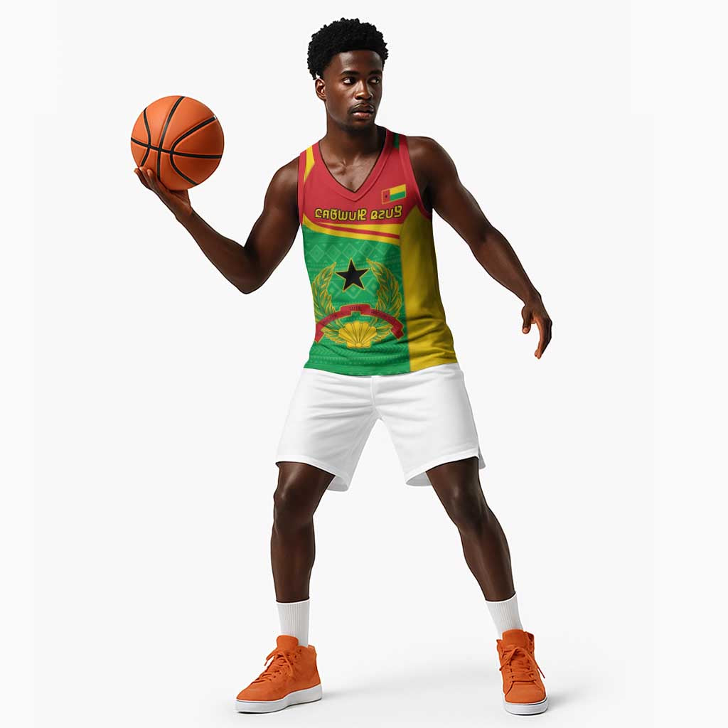 Personalised Afro Guinea Bissau Basketball Jersey Coat Of Arms Mix African Pattern