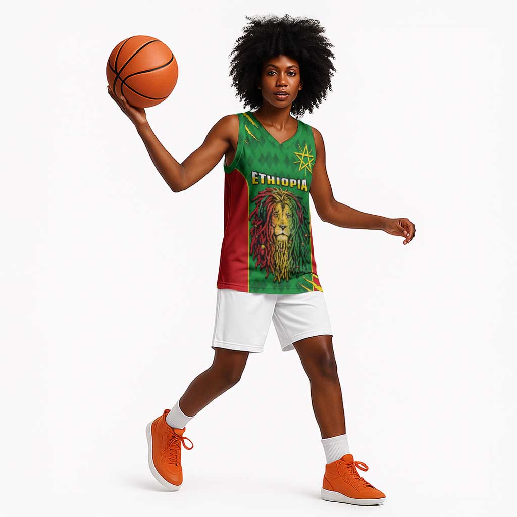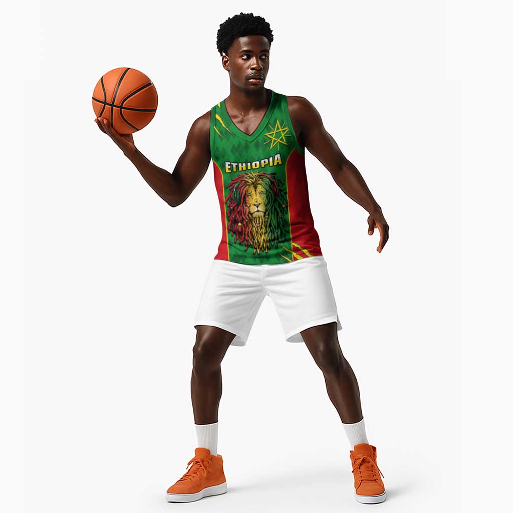 Personalised Ethiopia Basketball Jersey Men's Dreadlock Rasta Lion Headphones LT14