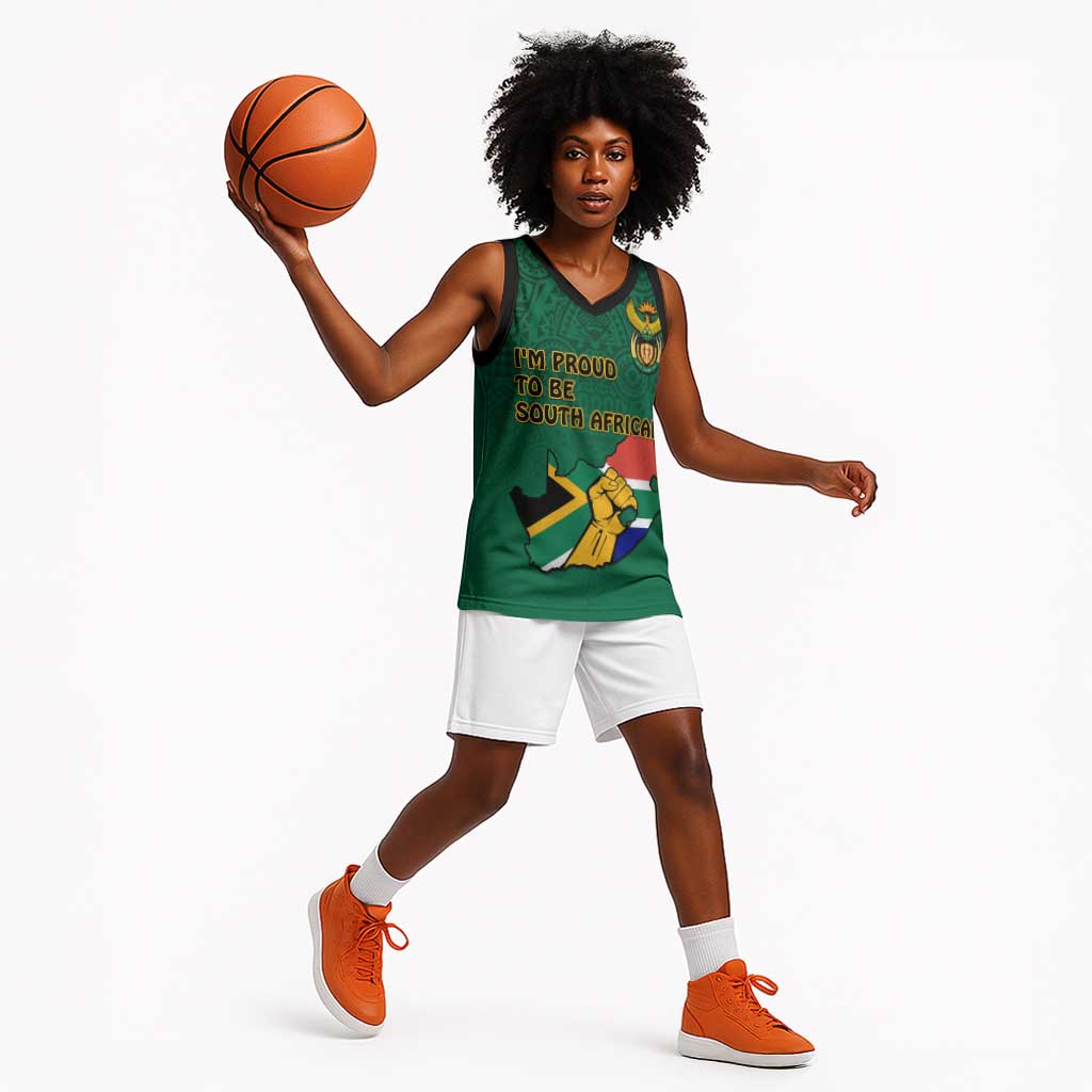 Personalised South Africa Basketball Jersey African Pattern Happy Freedom Day Green Version