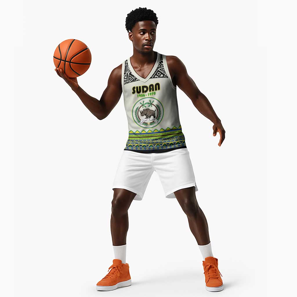 Personalized Sudan Basketball Jersey Coat Of Arms 1956-1970 With African Pattern