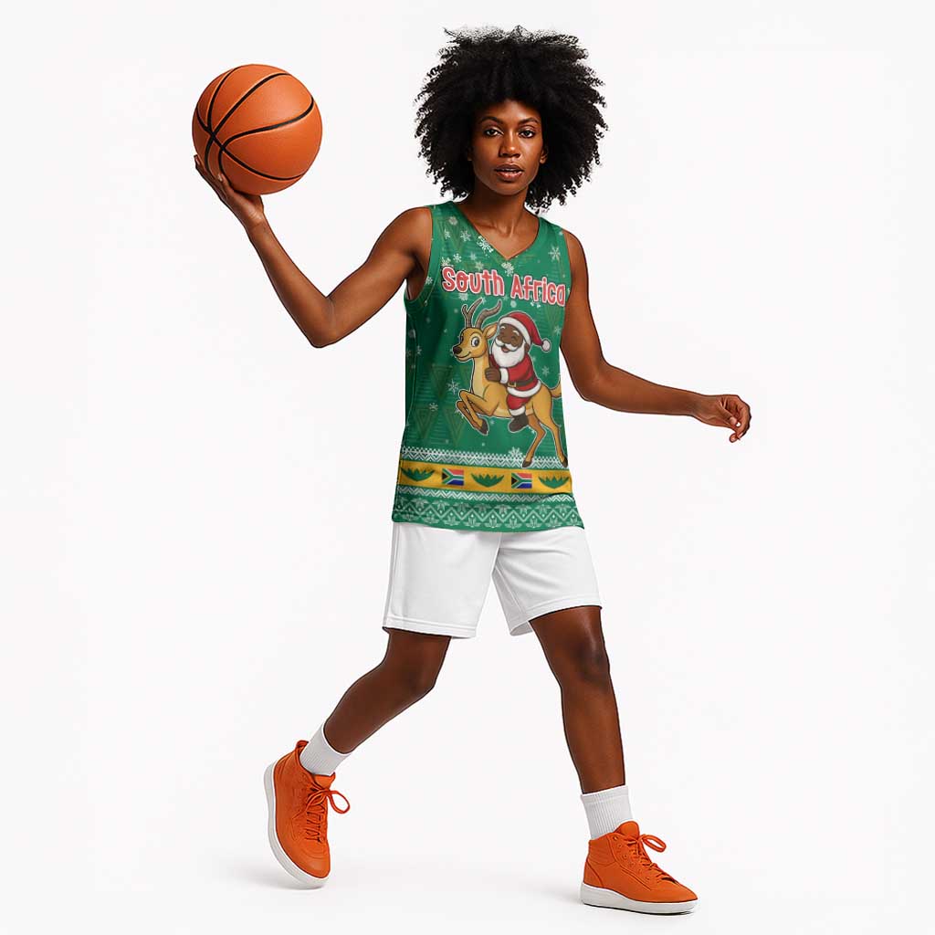 South Africa Christmas Basketball Jersey Santa Reindeer and Africa Map