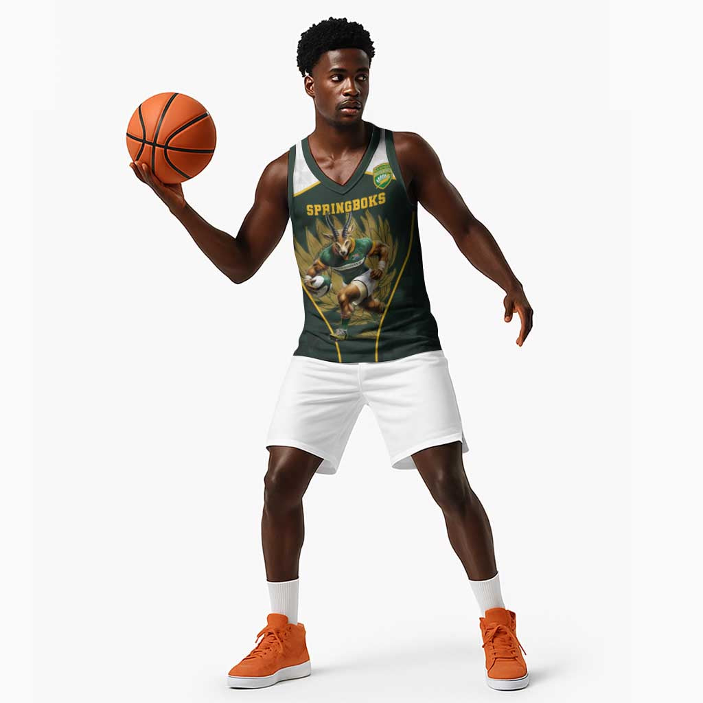 South Africa Rugby Personalised Basketball Jersey Springboks Mascot With King Protea - African Pattern