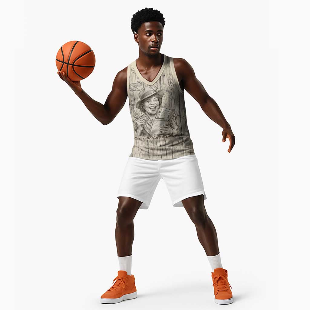 Zora Neale Hurston Basketball Jersey Rustic Wood Engraved Style Illustration Joyful Portrait with Book and Map Donkey TS04